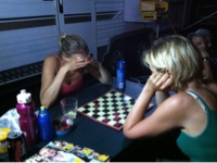Later on, we relaxed around the checker board and got competitive with each other. The horns came out as Aaron conquered all. We never knew he was so capable!