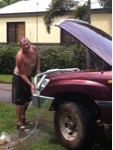 We returned just in time to rescue the washing from a tropical downpour and as we were collapsing chairs and moving belongings out of the wind and rain, the boys arrived back home. Before we inspected their catch, I threw Ray a cloth and suggested that he take advantage of the downpour to wash the car. It was still covered in a thick layer of Kakadu mud. 20 minutes later we had a clean car and Ray had enjoyed a refreshing shower. (Chris had previously taken his to a car wash and parted with a couple of hours and $40 to make his presentable).
