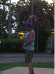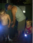 One of the kids next door has a couple of stock whips and is a dab hand at cracking them. He offered to let us all have a go so Caleb, Vicki and Ray tried. Caleb finally managed to get a crack noise but it was at the expense of of his ankle. Ouch!