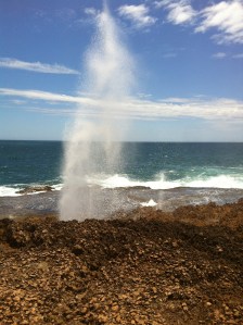 We headed out to the blow holes which were 48km out of town. We were amazed that we were able to walk right to the edge of the cliff and watch the blow holes in action. We commented that in Victoria there would be a fence, path and indemnity to sign, just in order to get within a few metres of the spectacular sight. We really feel a sense of disappointment admitting it, but our home state is so over-regulated compared to the other States and Territories we have visited that we just feel that there is no weight given to relying on people’s common sense and the fact that most people really will do the right thing. The powers that be, seem to think that the minority is the behaviour that is displayed by all and so they make their rules and regulations to reflect this. As a result the sightseeing is seriously affected and with it the experience. (Ok, rant over). There was a plaque dedicated to someone who had lost their life there and a big warning sign that you couldn’t miss. (Be responsible for yourself!)
