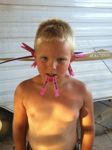 We spent a pleasant evening with friends who we met along the way, recounting our day and sharing our experiences in Carnarvon. Caleb kept himself busy with pegs!