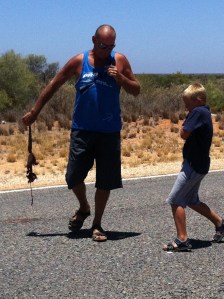 While we were driving, Ray spotted something unusual on the road and actually did a u-turn with the van to check out what it was. Caleb and Ray thought it was hilarious to pick up the baby goanna road kill and chase me back to the car with it. Disgusting! Even though I didn’t touch it or it didn’t come close to touching me, the hand sanitzer got a good work out. Aaron just sniggered from the back seat.