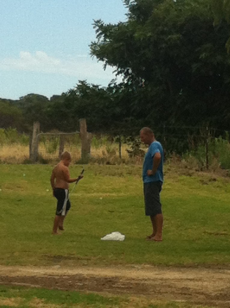 I came across a bag of golf balls (I know I didn’t bring them) so Ray took Caleb outside and they had a hit. He’s not too bad at hitting the ball. I can see a game of golf coming up! All in all, a productive morning.