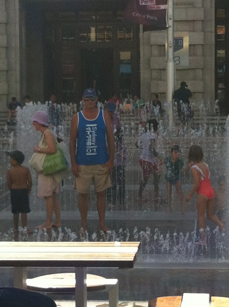 Ray joined the many kids playing in the water (interactive artwork) in the Perth Square. Caleb wasn’t interested but it didn’t stop Ray from playing!