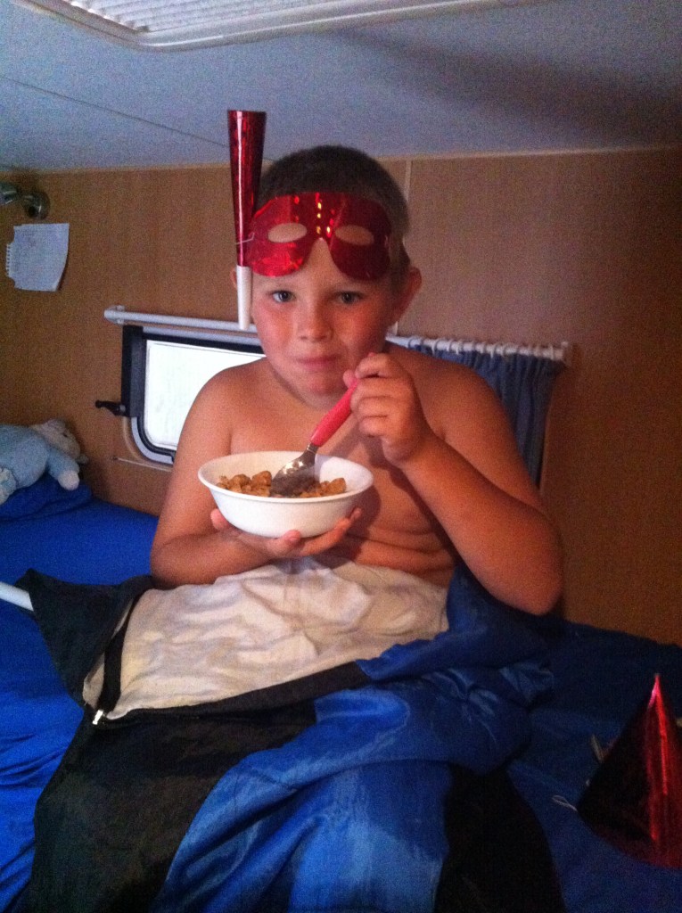 “Hey everyone, it’s my birthday today”. Finally, Caleb’s special day had arrived. He had waited patiently til 6:07am to announce it to us. In our house you get breakfast in bed on your birthday, so Caleb returned to his top bunk in the caravan with his bowl of cereal! He said he felt like the King.