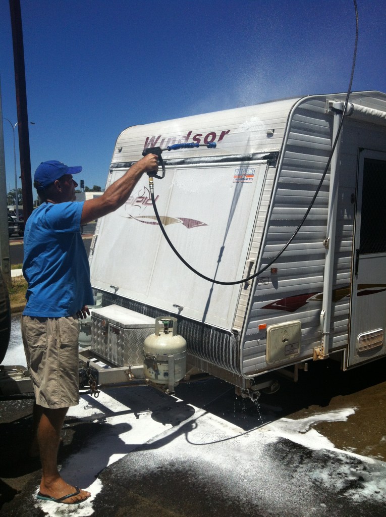 We headed to Bunbury to get a tyre fixed on the van. (Not that we didn’t have time over the last 3 weeks but we ARE on holidays) and while it was being fixed we decided it was time to wash the Kakadu dust off the van. Ray had managed to wash one side of the van during a recent downpour but that left 3 sides covered in red dust. Ray did a great job of it, only squirting me twice but I couldn’t catch his eye or see him giggle so I must give him the benefit of the doubt and call it accidental. Hmm…I just know him too well to be totally convinced it wasn’t on purpose.