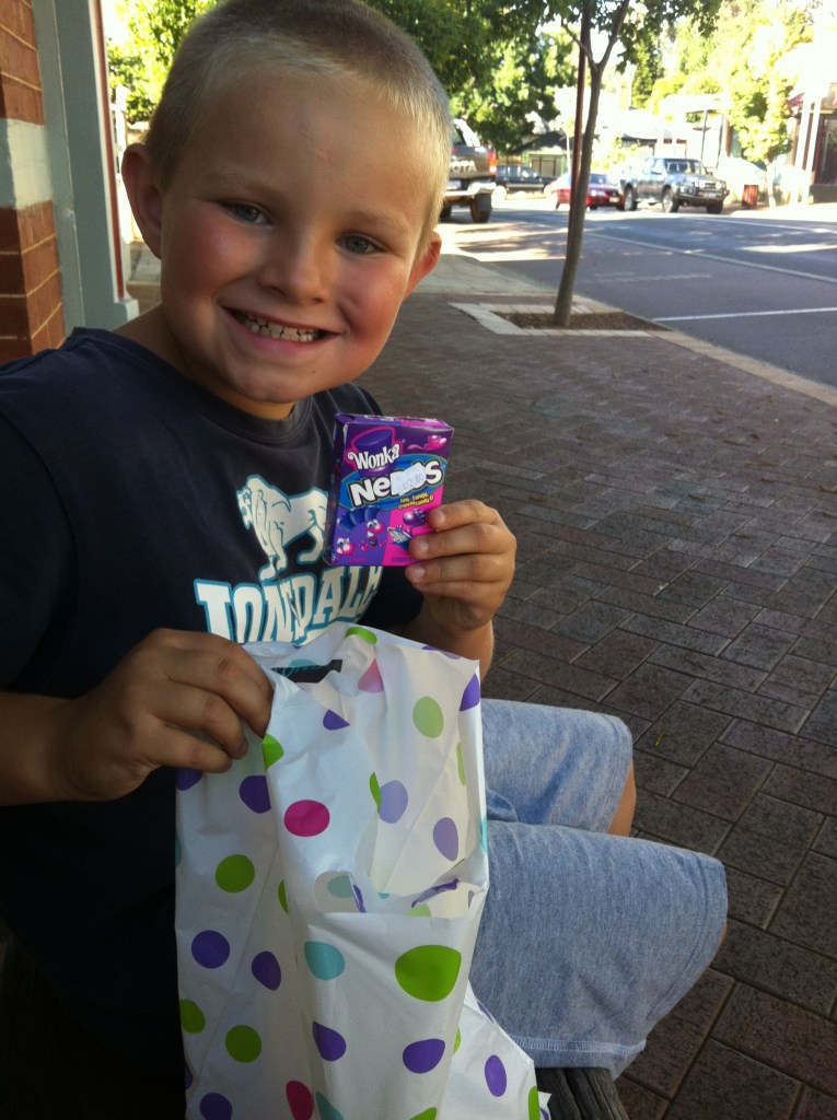We arrived at Bridgetown. We were each impressed by how pretty and quaint the town is. We explored a little, finding the lolly shop and the old fashioned “haberdashery” shop. That was a new word for Caleb. Ray got comfy in the “Bored Husbands Chair” while Az and I looked at the 2nd hand books. The information centre also houses the only known jigsaw gallery in the Southern Hemisphere. All the jigsaws were donated by a local resident, and there were hundreds! We took a bit of a drive around the town which we like to do when we arrive at places. It gives us a bit of a feel for a place when you get off the main drag and cruise around the back streets.