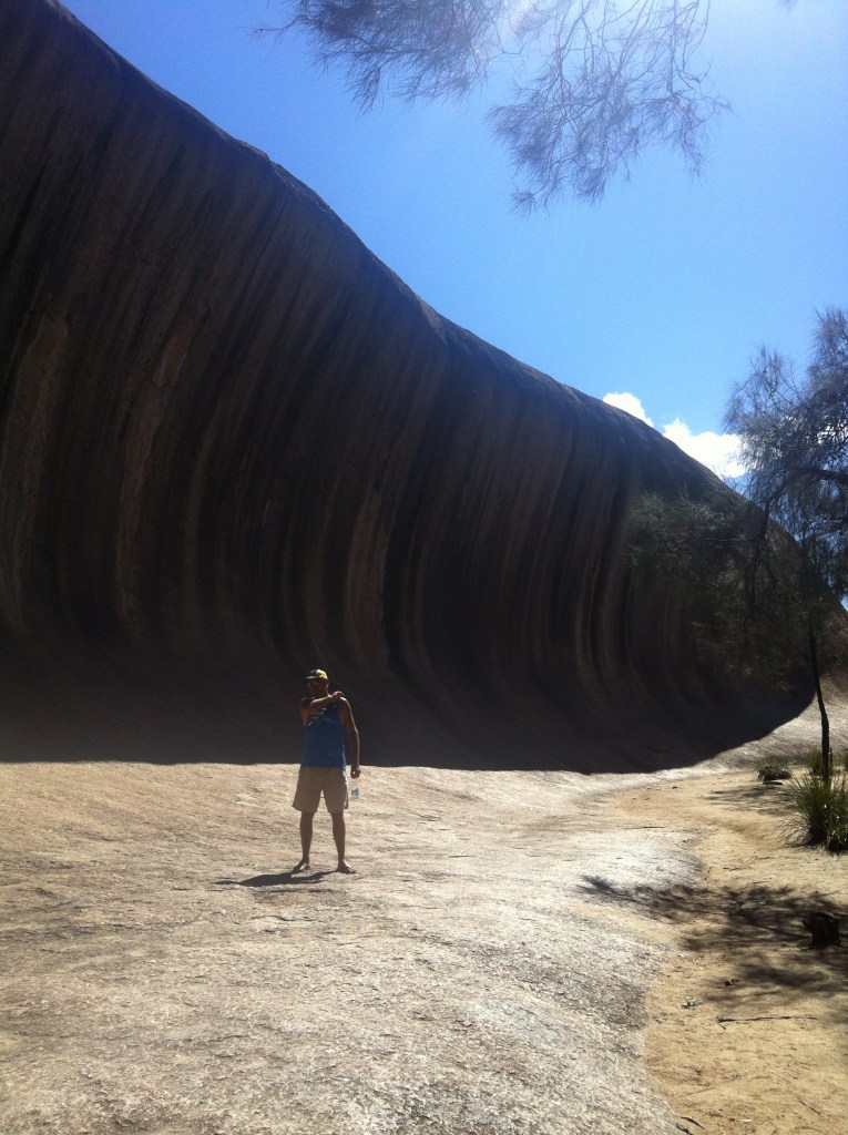 We enjoyed taking photos of us “surfing” the rock and seeing how far up the waves we could run without falling down. Not quite as soft a landing as if we were playing in the ocean, but lots of fun nonetheless. Definitely a place to wander about for hours and marvel at the majestic force of nature. Another destination for your ever increasing list of must dos in and around Australia.