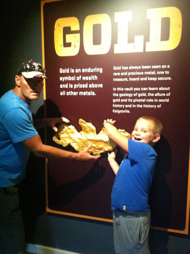 We took a look around the market, struggling in the heat and then decided to tour the museum and enjoy the air conditioning. The displays were fantastic and we saw some real gold nuggets found in the area. The highlight for me was seeing the actual Mulga Bill’s bicycle that was the inspiration for the picture story book of the same name. It was made in 1899 by prospector Mulga and he reportedly pushed it hundreds of kilometers across Western Australia while he searched for gold. Ray didn’t know the story and Caleb wasn’t interested but I was absolutely thrilled. The story was adapted from a poem by one of most famous Australians “Banjo” Paterson. You can read more about the poem and the cycling craze to hit Australia here.