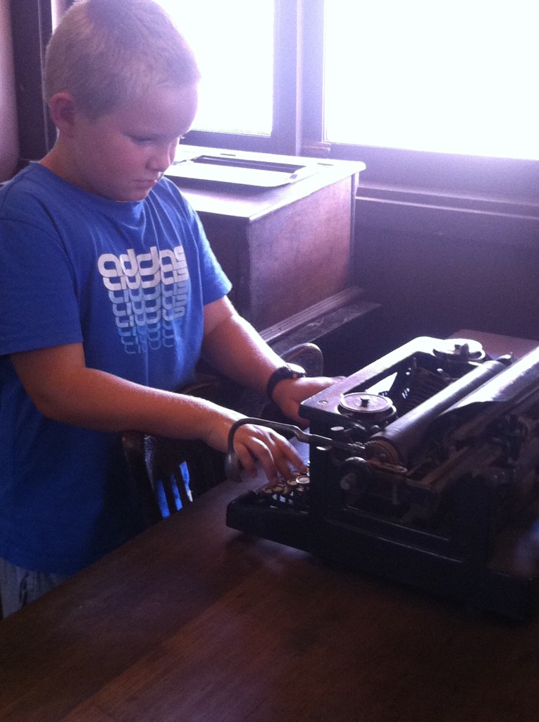 Caleb was very impressed with the old fashioned typewriter and asked if we could get one and Ray noticed the antique Ericsson wall phone which is identical to the one we have at home.