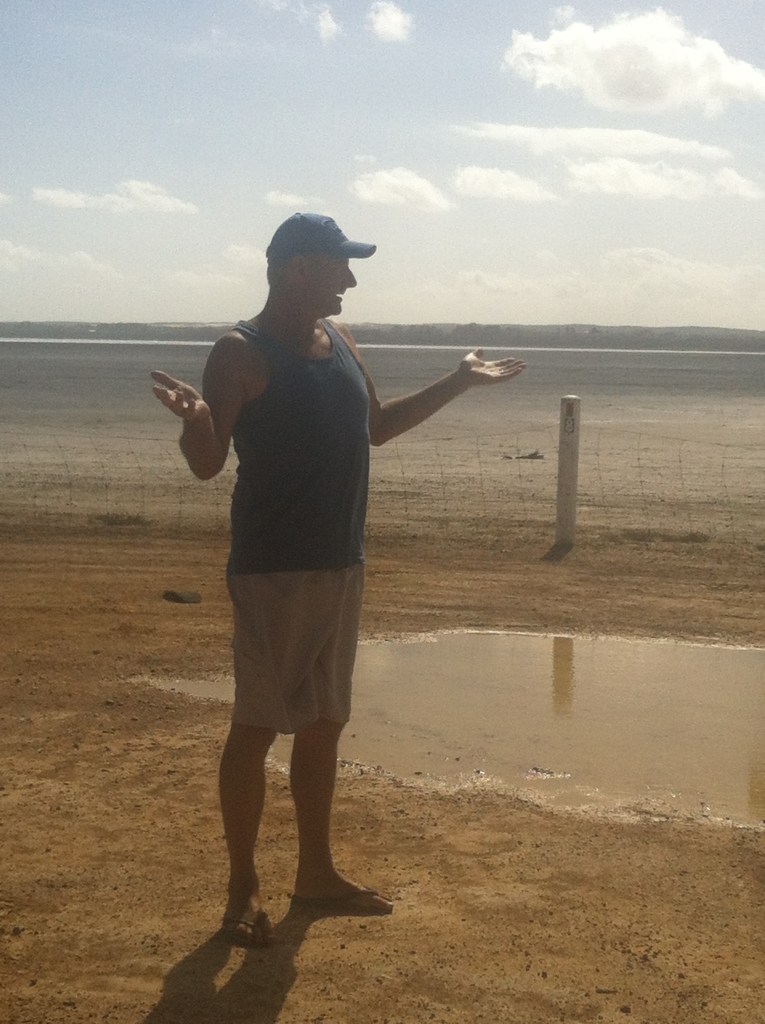 Before heading back, we went in search of the Pink Lake. As we came over the hill into Esperance last week, we could see the lake in the distance and it was brilliant pink. Today we were not so lucky. The lake was simply a wide open bog. Poor Ray, he was really looking forward to seeing it up close. Ray consoled himself with a sausage in bread from Bunnings Warehouse, always guaranteed to make him feel better!