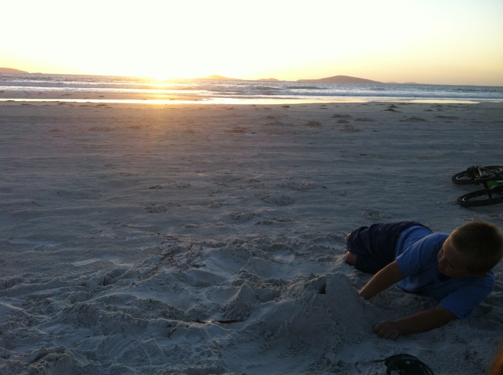 Once we were back at camp and the groceries were unpacked, Caleb acted as our messenger to arrange afternoon drinks with Peter and Chris who were camped next to us. We spent an enjoyable hour exchanging life stories then we all headed to the beach to watch the sunset. Peter and Chris have lived a truly amazing life, lived in numerous places, and are such genuine people. Once again we reflected on how we have had some absolutely lovely people pass through our lives on this journey. We hope to one day run into them again.