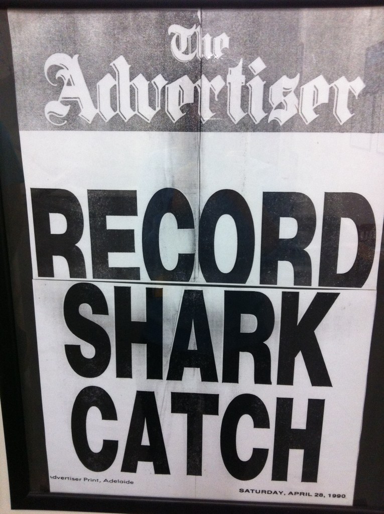 This shark is a life size replica of the one caught here in 1990 by a 21 year old local. It was caught on a 24 pound line. It holds the record for the biggest caught in the world and gave researchers a lot of information on the reproductive systems of female sharks. It wasn’t often that mature females were caught, so the information about them was little. This one was between 16 and 19 years old. Of course, now that Great White Sharks are protected they can’t be purposely killed.