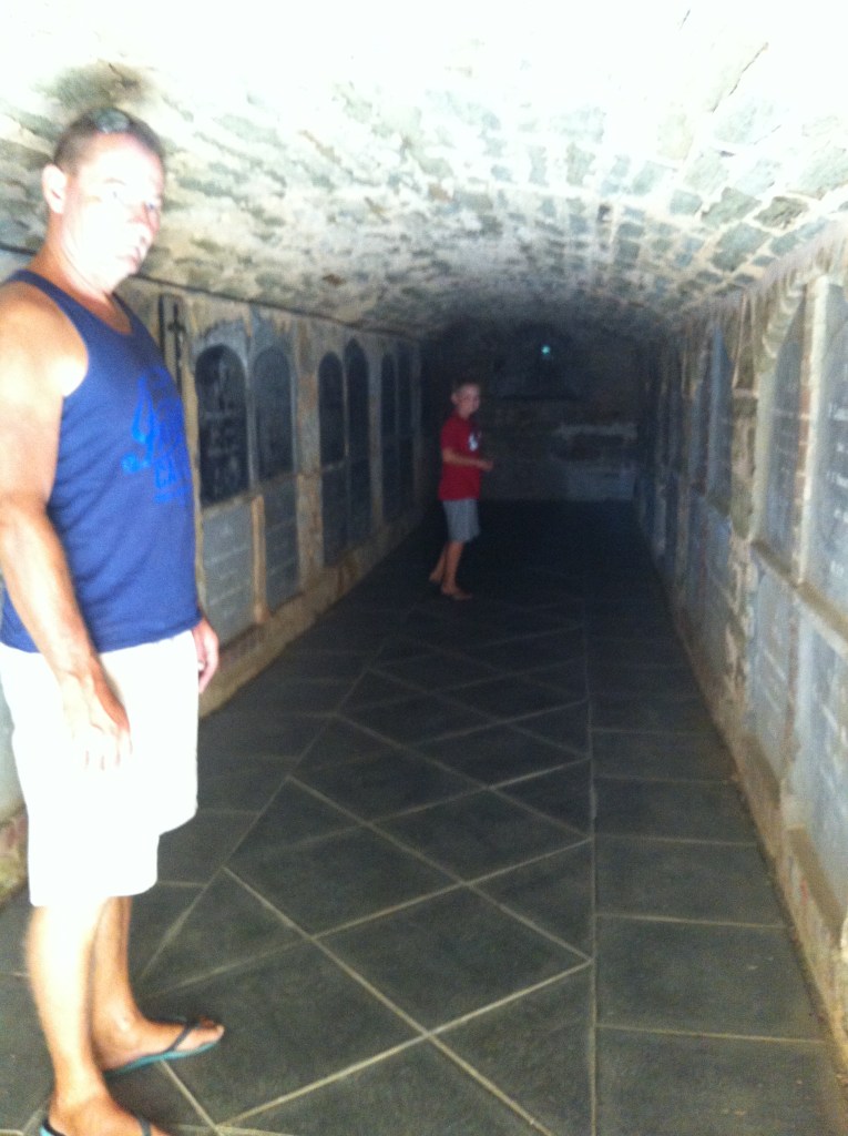 Seven oaks has a church built with the winery and it is the only parish church in Australia to have its crypt underneath the church. We were able to go inside and have a look. I tried to freak Caleb out by telling him that behind every panel was a dead body. He corrected me, telling me that by now they were skeletons. I believe I detected him rolling his eyes at my misinformation. Ray explained how the confession box worked and Caleb thought it was pretty cool. He loved all the secrecy but unfortunately, being the model child, had nothing to confess. (!?!)