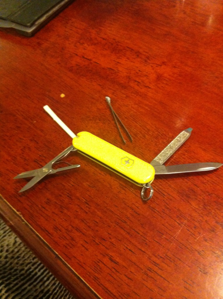he eagerly unwrapped a boxed Victronox pocket Swiss Army knife for me! How clever is this kid? I didn’t even know I wanted one until I had one. How handy. And it is YELLOW. The only one available in the shop!