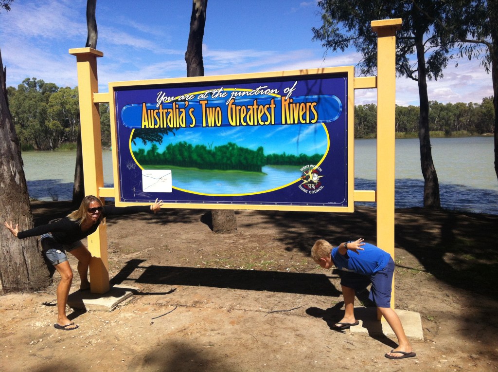 We took a drive to the river junction. This is where the Murray River and Darling Rivers meet and the one resulting river becomes the Murray Darling. The Murray is quite dark and muddy water and the Darling is much clearer. Where they meet there is a clear colour distinction until the water mixes and then it resembles a chocolate milkshake. Interesting.