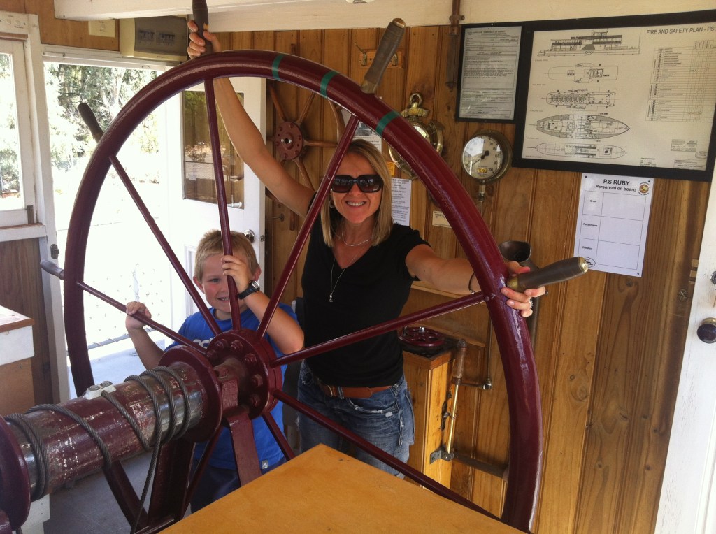 We toured the paddle steamer Ruby” which has been lovingly restored by a band of enthusiastic volunteers. We had a go at steering her while Ray asked the volunteer guide about the possibility of doing a “Titanic” on the bow of the boat. Unfortunately, it wasn’t allowed. As usual, this didn’t deter Ray who was trying to get a definition on ” not allowed” from the guide as I walked away.