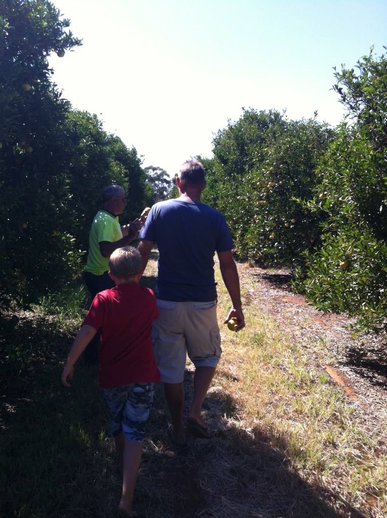 We drove through Leeton and saw a sign for fresh fruit. We needed a little bit and refuse to buy stone fruits from supermarkets so picking them up from roadside vendors is the way to go. We stopped and went inside. We met the fruiterer called Angelo. A lovely generous man who got talking to Ray and took us on a tour through his orchard, explaining how the irrigation system works with gravity and picking fruit straight from the trees for us. Ray was so happy to be able to eat an orange straight off the tree as he had been threatening to stop at an orchard and take one from the side of the road. I was glad that he didn’t have to resort to thievery and he did announce that the orange was the best he had ever eaten. We kept telling Angelo that we only needed a few things but we left with: