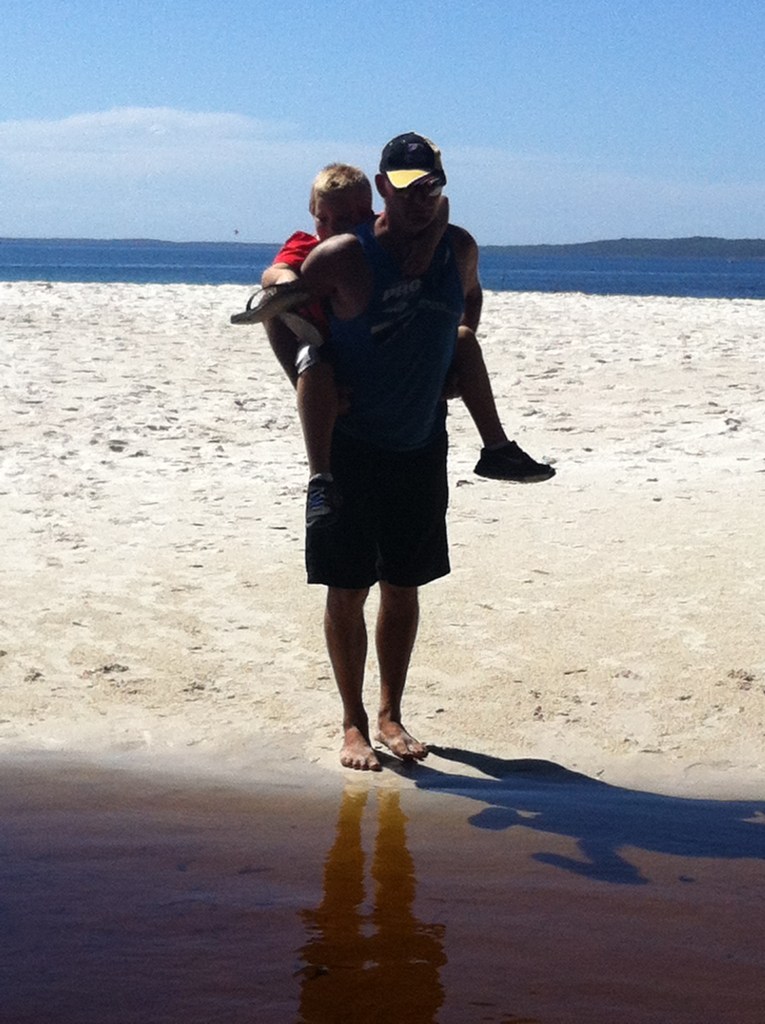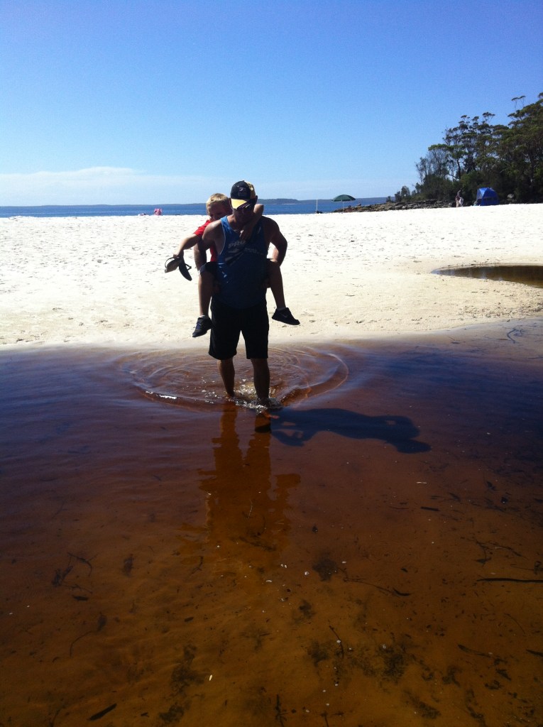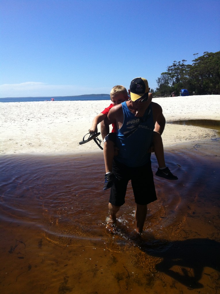We pulled into Jervis Bay for lunch as Ray had heard so much about it. It’s in a national park so it was $11 entry. We went to the beach for a look and it was really beautiful. All turquoise and white. Caleb scored a piggyback across the inlet because he was wearing runners. We could have stayed here a few days but we continued on, ever conscious about the impending holidays and the increasing traffic on the roads and the need to get settled into our accommodation. We will be back to explore this area again in much more detail.
