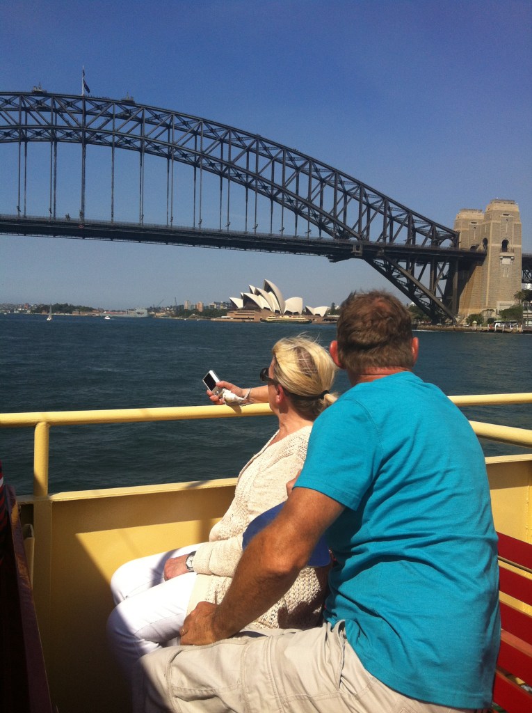 We headed for something to eat at one of the cafes on Darling Harbour. As Corrie says, ” Australians always want to eat and they eat too much!” After lunch we caught a ferry around the Harbour to Circular Quay. We travelled under the Harbour Bridge taking in the sights. The Opera House is magnificent seen from the water and we weren’t the only tourists taking photos and expressing our thoughts. There were a couple of cruise ships in the Harbour waiting to depart, now that’s a way to holiday!