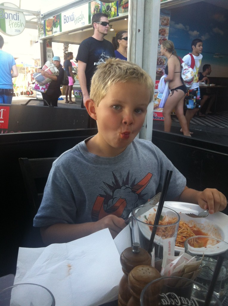 We made out way to an Italian restaurant opposite the beach. The whole area was really pumping and was full of very young people, many of whom were backpackers. We ordered lunch and sat to watch the world go by.