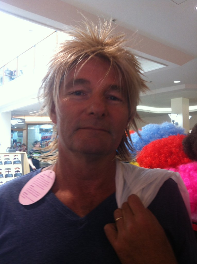 We had located a specialist gas mechanic who happened to be nearby and we were booked in for 8am. We dropped off the car and then walked 1.4km to the shopping centre to while away some hours while they fixed it. The Castle Hill Towers Shopping Centre is 3 levels of shops, cafes and restaurants. It was mammoth. Ray was persuaded to try on some wigs, very 80’s looking (I’m convinced his real hair must have been very much like this at one stage when he was a teenager because he really didn’t want to take it off) and Caleb discovered the view from the top of the spiral staircase. We went down it with the intention of looking up to see the upwards view but realised that also meant that we were looking up the skirts of ladies. Oops! We quickly moved away. We wandered around until we decided to head back. Ray had been in touch with the mechanic and they needed to fix the brakes also so we knew it was going to take a while. Even I was ready to leave by 4:40pm. We had been there since 9:15am.