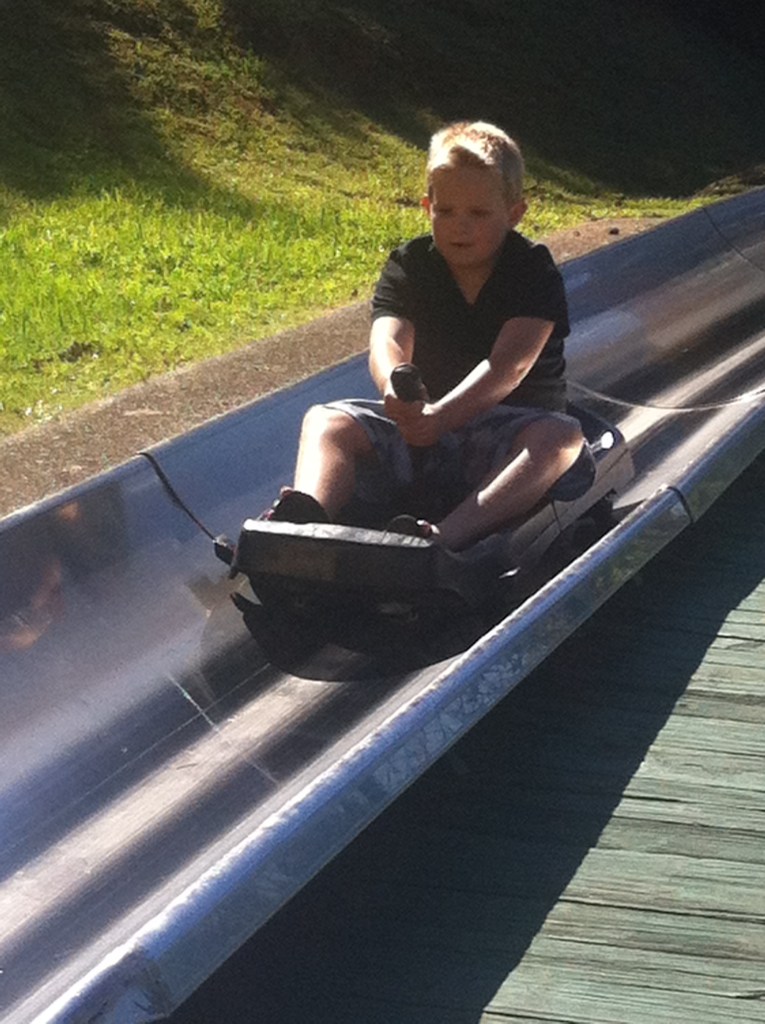 We also had to visit the Big Banana which was close by, everyone does when they are in Coffs Harbour and it is the main tourist attraction in the area. Apparently it was the first of the “big” things in Australia, now rivaled by the big pineapple, orange, prawn, galah, dugong, lizard, guitar, worm and many other objects. Attached to the banana shop and cafe is a toboggan ride and a small water park boasting the “biggest” available inflatable water slide in the world! Caleb had a couple of turns on the toboggan and declared it the most fun ever! We talked him out of the water park as we didn’t have his togs with us.