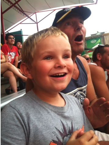 We headed to the stunt car show. Again, Caleb’s (and Ray’s) face kept me entertained so much so that I didn’t bother watching the show and just took photos of them.