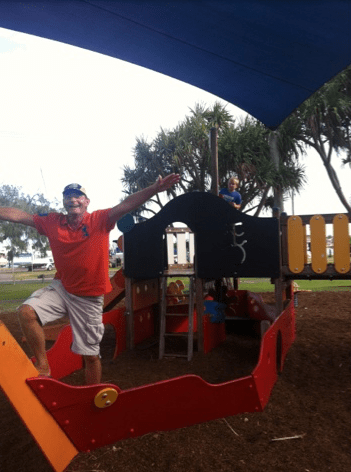 Walking back into Mooloolaba, we stopped for a play in the playground. We did the Titanic traditional pose at the front of the playground ship and then Caleb suggested that I was the Captain, Ray a deckhand and Caleb was going to be in the water and needed to be rescued. We played out the scenario but Caleb put a stop to the fun when I said that after being rescued he needed to be kissed on every inch of his head. Caleb’s hand actually went up in front of his face and he said, “I’m alive alright!” He clearly didn’t want to be kissed. I was slightly offended.
