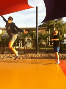 When we returned from our walk, Caleb asked us to watch him on the giant jumping pillow. It looked like so much fun that we couldn’t resist and Ray and I had a jump too. I did check the rules to make sure there was no age limit, and we were good to jump. I think trampolining is something your body likes when you are younger, but as you get older the insides of your body bash about against the outside of your body. It’s quite an unusual feeling but fun all the same.