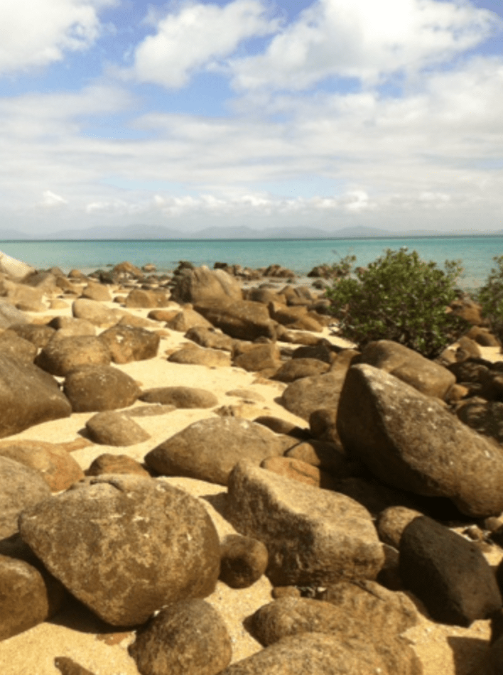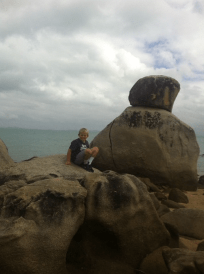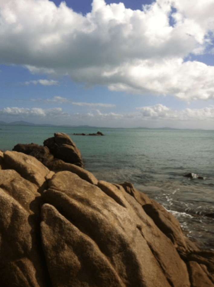 We followed the signs to Hideaway Bay and easily located the Cape. There are a couple of resorts right on the water and then a dirt 4WD track. Knowing it was unlikely that this track was going to turn out to be as adventurous as yesterday, we headed down it. It was bumpy and had deep crevices but all the head wobbling was worth it. We pulled up in front of a little slice of paradise. It was a small little cove and beach. There were rocks and a beautiful outlook. We were the only ones there for a while so we explored the rocks, shells and water. It was so beautiful and reminded me of my most favourite place we have been to on this trip- Cape Leveque, Western Australia.