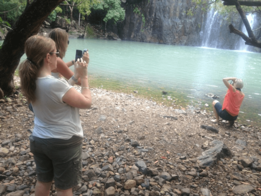 First stop was Cedar Falls. This is a picturesque scenic sight with a rushing waterfall complete with fresh water splash pool at the bottom. Karen had her “fandango” camera with her and took many shots of the falls, while Linda and Annette took photos of her taking photos! Don’t ask me why, I was only the guide and steadier for the short rock crossing over the little stream. The girls were “thankful” that their feet brought them back safely.