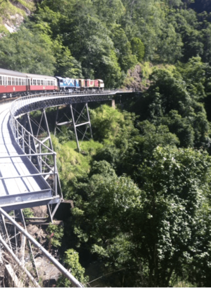The train meanders through the rainforest, taking nearly two hours to reach Kuranda, a rainforest village well known for its markets and local artisan crafts.