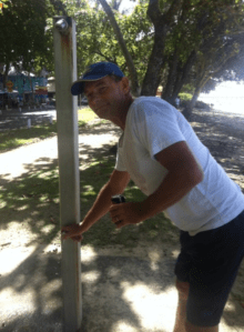 We planned to explore the beaches between Cairns and Palm Cove. Each was attached to a lovely little village, with houses and a few shops overlooking the beach. When we reached Palm Cove the difference in the houses were obvious. They were catering for the elite holiday maker and even the main road that ran along the foreshore was cobbled. It looked like a lovely holiday spot with plenty of accommodation to choose from. We had our picnic and Ray went to the foot shower to wash his fingers. He pressed the button to turn the lower tap on but the top tap activated instead and he ended up with a very wet tshirt. Caleb and I laughed a lot. It was warm enough that it didn’t take long for it to dry.