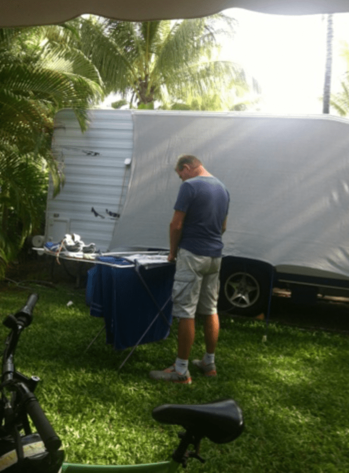 After the market we returned to the van where Ray proceeded to read the paper standing up, leaning it on the clothes airer. When I queried him he admitted that he has been sitting around a bit lately and it was time for a bit of standing. Must be male logic!