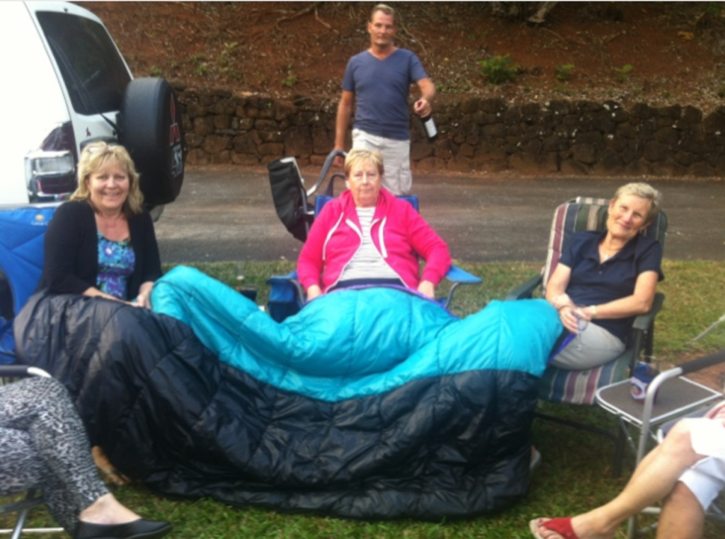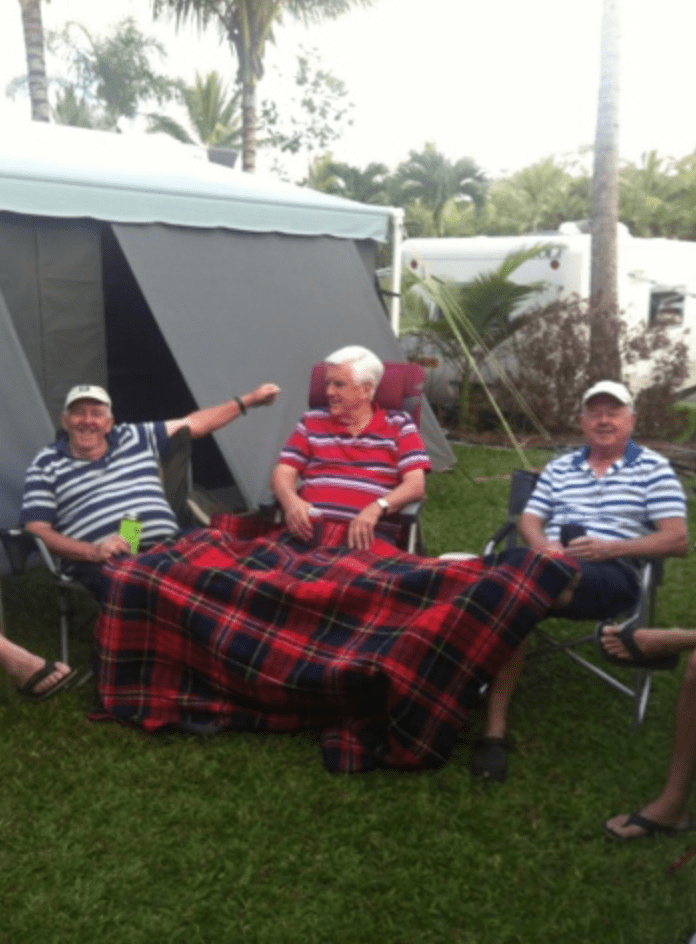 To fully appreciate what happened at our this, our last drinks session, I have to make a confession that I wasn’t going to mention on this blog. Of all the campers who gathered for our drinks sessions I was the youngest and yet the only one who turned up each night with my “Nanna” blanket. As soon as the coolness of the day sets in, I wrap my blanket around my knees (or lower half) and settle in for the night, whether we are inside the van or outside. Most times I have my Emu Uggs on too. So, it was only natural that I took my blankie to our evening gathering, no matter where it was. I became known for it and suffered some good natured ribbing.