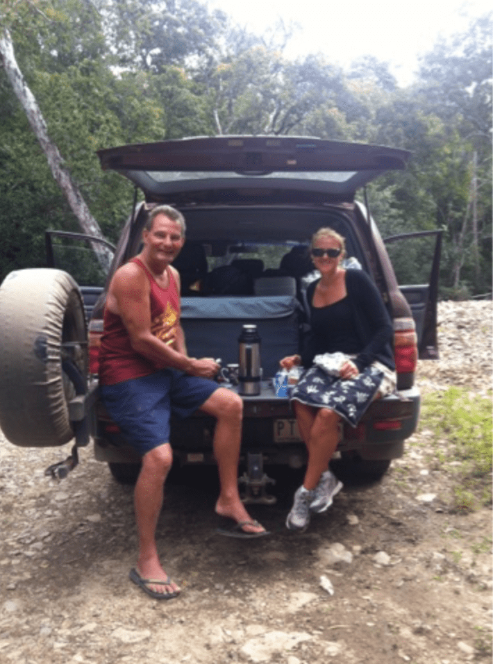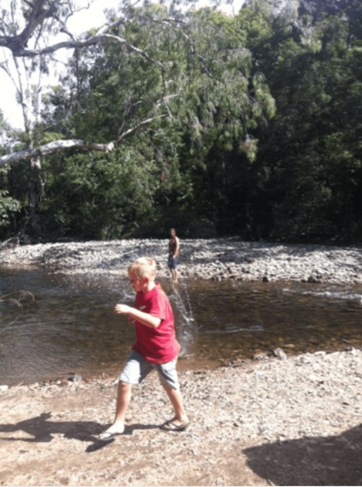 Ray was also told to check out The Lions Den Pub which was further along the Mulligans Hwy. We saw the pub and kept driving, exploring further, and looking for a picnic spot. Eventually Ray pulled over. This spot had none of our normal prerequisites of a picnic spot, no toilet, table or rubbish bin. What it did have however was running water and and endless supply of river pebbles just right for perfecting the skimming skills that had started at the beach. Ray had pulled over at the side of a shallow river bed. Ever wary of crocodiles, I did a quick assessment and decided it should be ok. I crossed my fingers, besides I wasn’t going in the water, only Ray, knowing him.