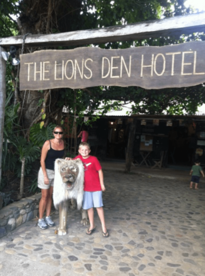 Well, it’s always fun until someone gets hurt and with a few misplaced throws, Ray copped a bit of a battering. (Reminder to throw the tennis ball a bit more to improve Caleb’s target hitting skill). All of the giggling and running resulted in REALLY needing the toilet so we got into the car and went back to The Lions Den Hotel.
