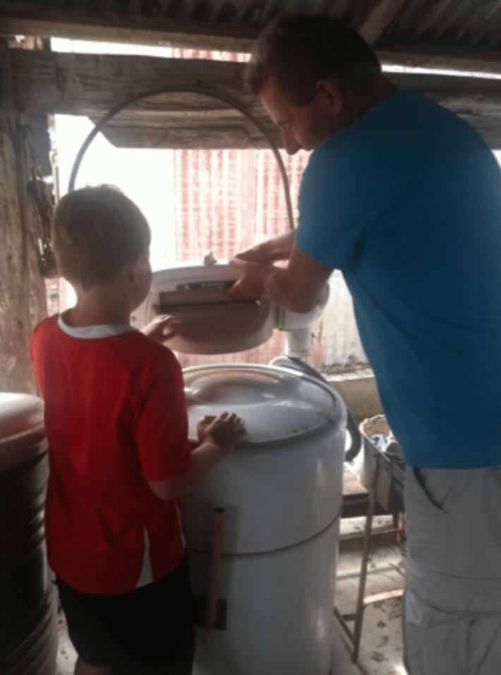 Ray found an old wringer washing machine like his mum used to use. He showed Caleb how it would wring the water from the clothes and told the story of how his mum got her hand caught with the washing and they had to pull her out. Caleb was suitably impressed.