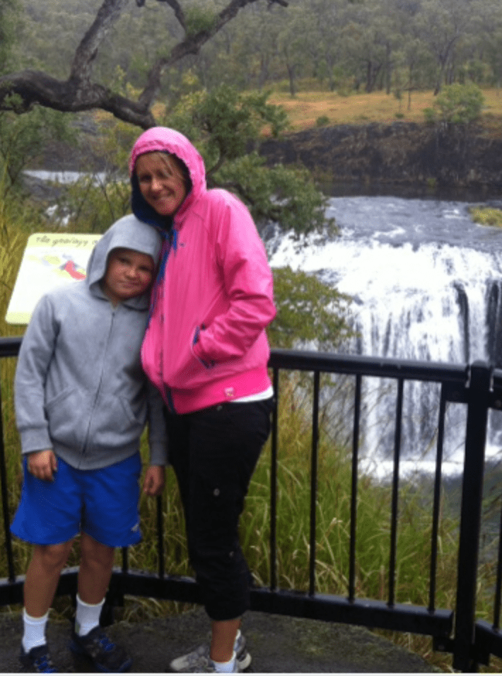 It was another wet morning and we couldn’t even point out the wind turbines that we passed to Caleb because we couldn’t see them! We noticed the signs for the Millstream falls, Australia’s widest falls, so we stopped for morning tea. A short walk took us to the top of the falls and a lookout. This area was used by the army during the Second World War and there is still evidence of bunkers along the Heritage Trail. The rain was falling harder so we skipped the trail and retreated to the covered picnic tables instead for a hot coffee.
