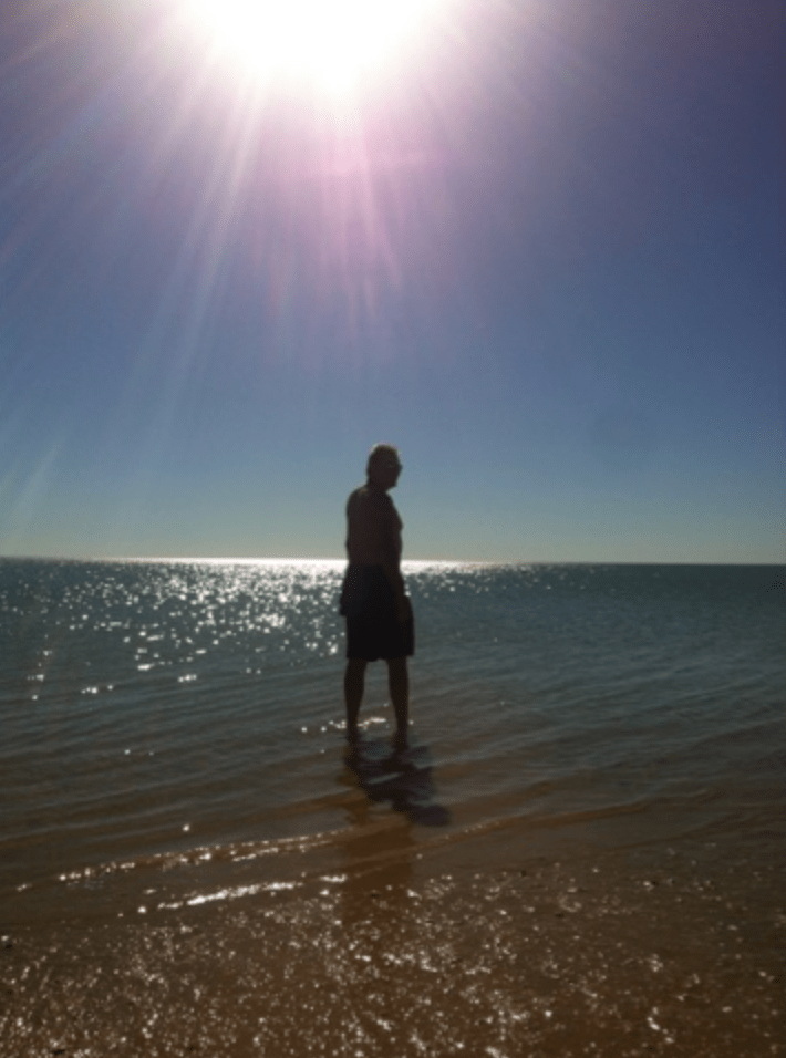 We set up and took a look around town, going out to the point and walking along the beach. Even though this is croc country, we couldn’t resist the temptation of standing in the Gulf. The water was warm and we felt a sense of achievement just standing in it. We walked along the beach collecting shells, chatting to other tourists and enjoying the view of the Gulf.