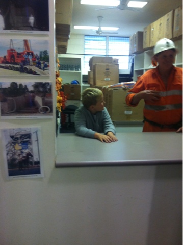 Caleb was the only child on the tour of 22 people. He scored the special job of helping Bill, pushing buttons, moving levers and being up the front at all times.