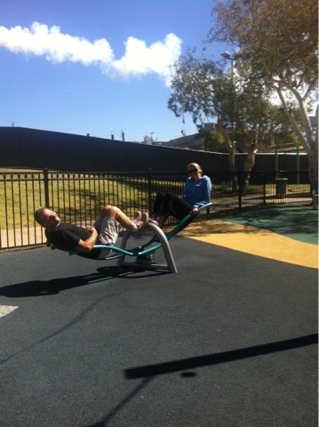We couldn’t believe that we were the only ones there so we had the whole place to ourselves. This gave Ray and I free reign to play on the equipment with Caleb without upsetting little kids by taking their spots. We had a huge amount of fun. After a game of tiggy, during which I built up so much static electricity that when I tagged someone it hurt, we were exhausted.