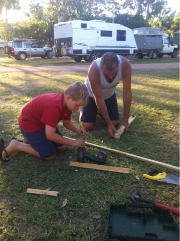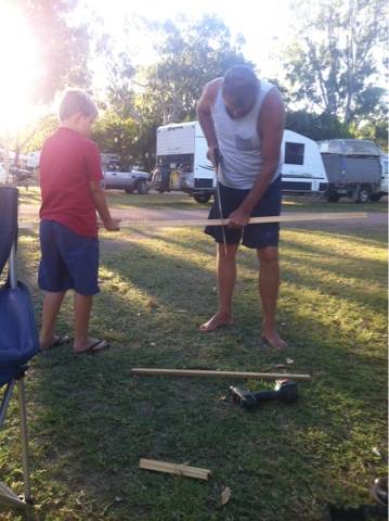 Ray and Caleb were busy outside creating a car track for 2 of Caleb’s cars. In a moment of weakness, Ray had promised to build it when we arrived. They were busy sawing and screwing but I missed the end product because by then I was well and truly asleep. I’m assured I will get to see it tomorrow.