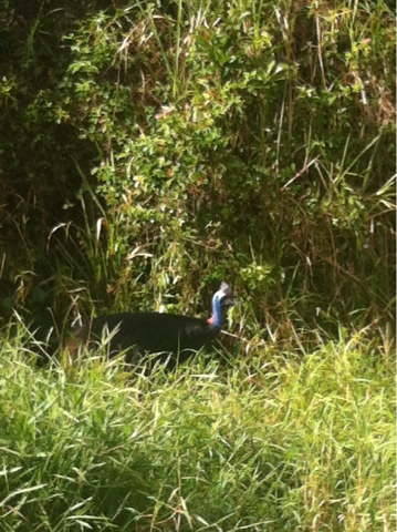 This whole area along the coast is known as the Cassowary Coast and the main highway is lined with signs warning about being aware of Cassowaries. As it is a protected species, they are quite coveted in this region. We have seen plenty of pictures of them, but none in the flesh … until this morning.