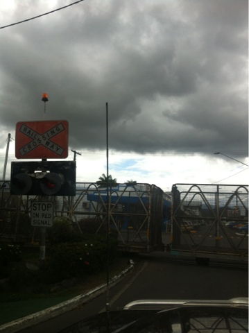 We headed for Babinda where we stopped for morning tea. We were just in time to see a sugar cane train pass through the town, literally down the middle of the street. It’s so strange to see a train just rolling through a main street.