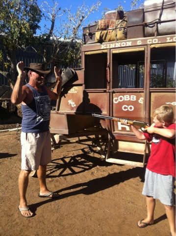 The main touristy thing we had been wanting to do was to go on the stagecoach ride through the scrub. Ray was very convincing, and eventually the operators agreed to put on an extra ride that afternoon as long as at least 2 other people other than us signed up too. It is important that the coach is properly balanced so it couldn’t run with just us in it. While he was finalising details, two other tourists entered the booking office for the same tour so we were good to go.
