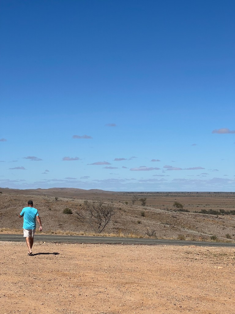 We saw a sign for the Mundi Mundi lookout so we drove on a little further to the find it. We could see the undulating hills and arid landscape, the perfect setting for movies that require an environment like this. Apparently every few months commercials are still shot here.