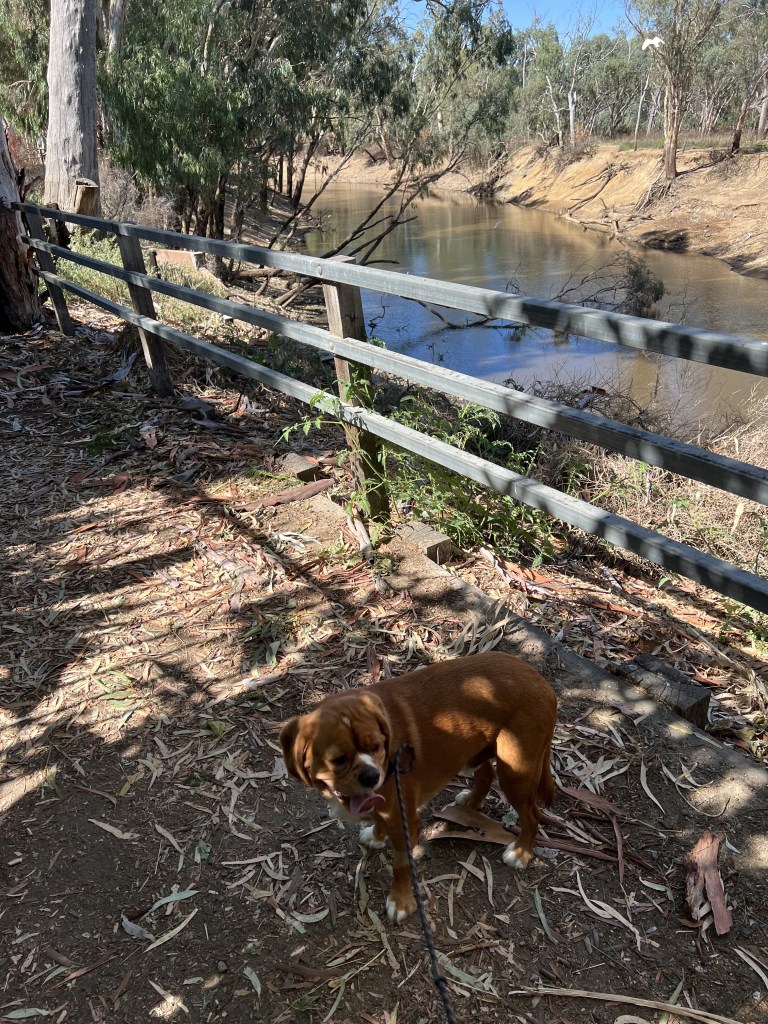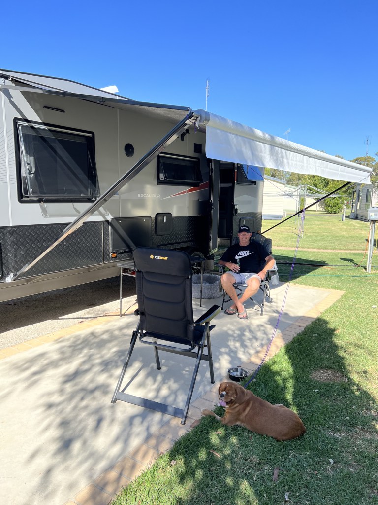 We are staying in Moama at a pet friendly caravan park. We weren’t really sure what to expect because “pet friendly” hasn’t ever been on our list of criteria before. I just couldn’t bear the thought of 9 weeks without The Captain so he had to come along, regardless of what the accommodation was like.