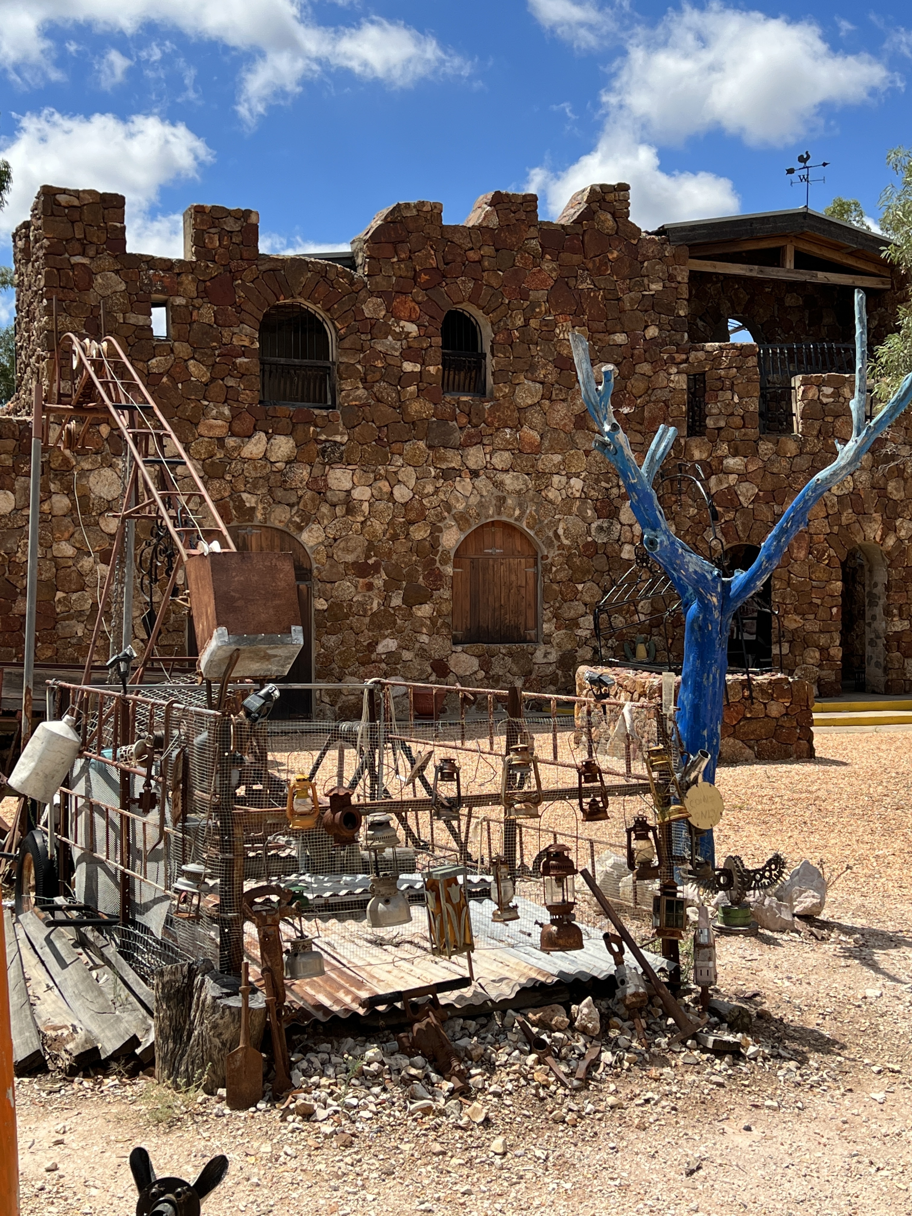 This morning in an endeavor to find out if the castle was pet friendly (it is), I Googled it. The very first article that came up (even before the website) was an article about a local Lightning Ridge man who had finally been found as the murderer of a local woman in 2020. Yes! Amigo. The article went into detail about what he did and so now we will have to go back and see if it’s closed due to it being Sunday or murder. Ray took some photos through the hole in the fence anyway.